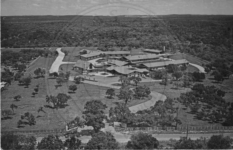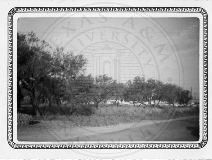 Post Card of buildings surrounded by trees |