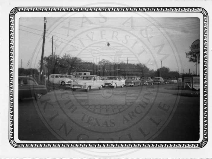 Caption: "This photograph depicts cars parked horizontally. centered. The road is visible in the lower portion of the photograph." |