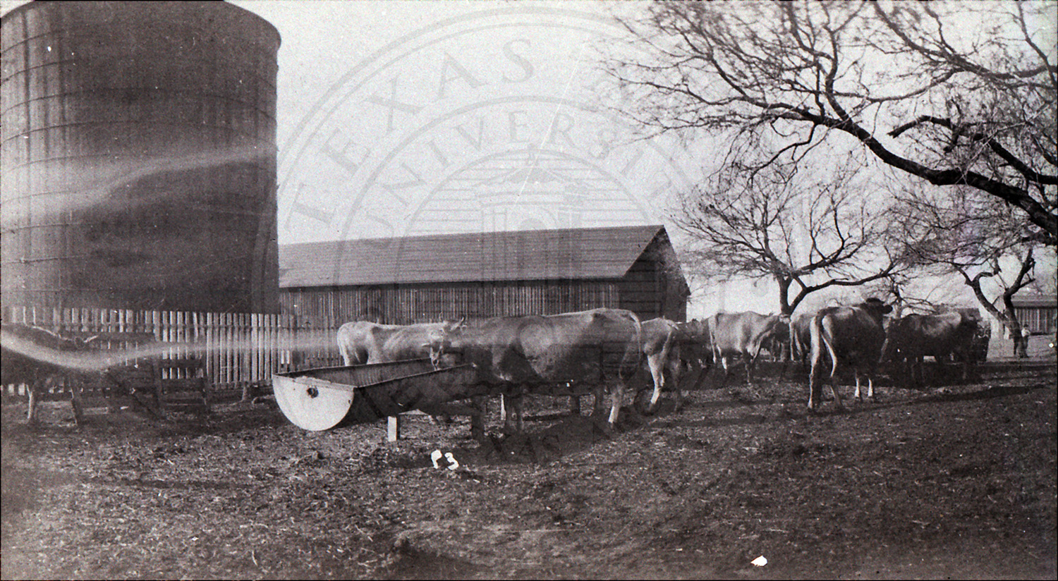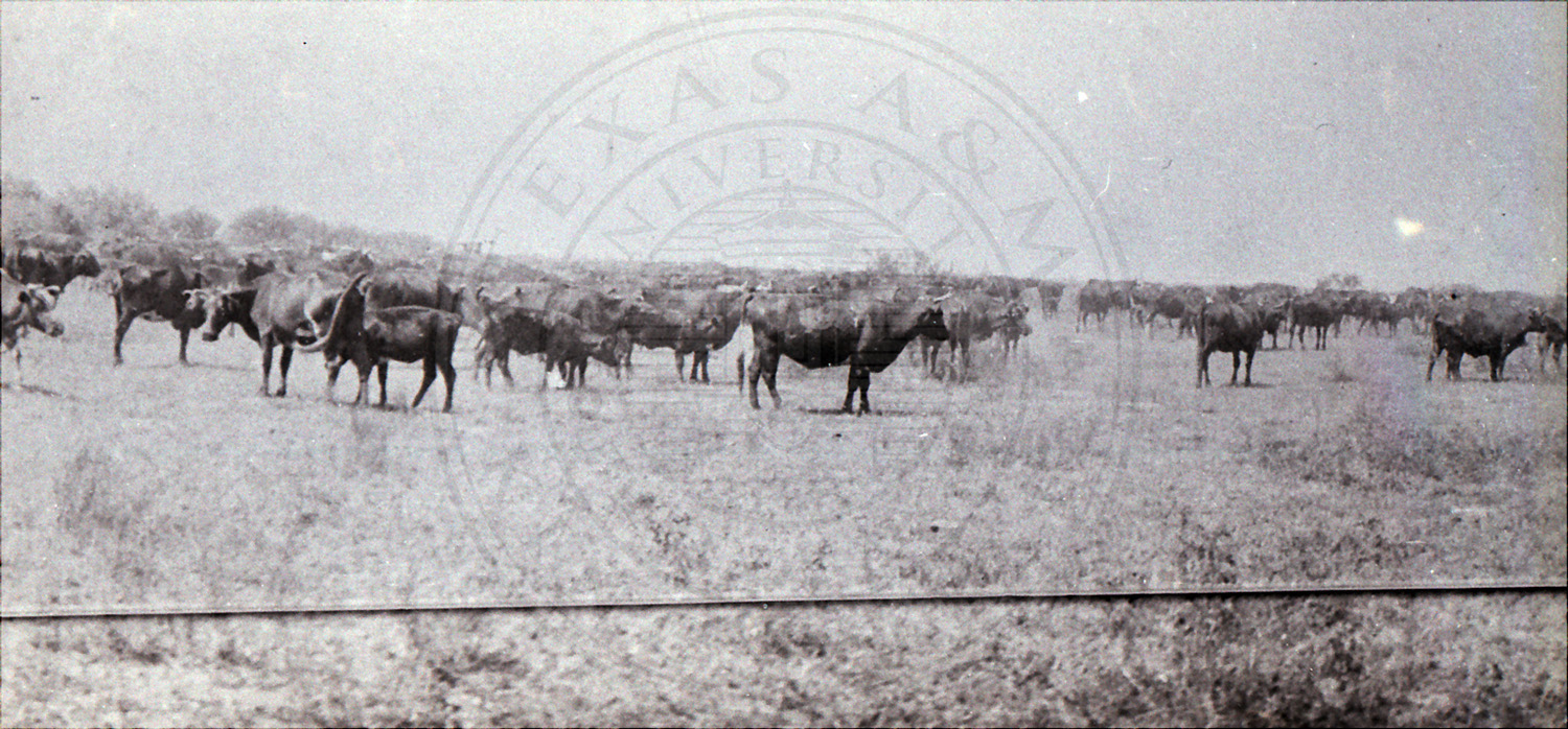 Cattle drinking water and laying under a tree on ranch at Norias. |