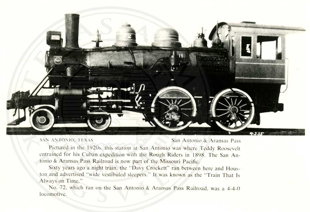No. 72 which ran on the San Antonio and Aransas Pass Railroad, was 4-4-0. |