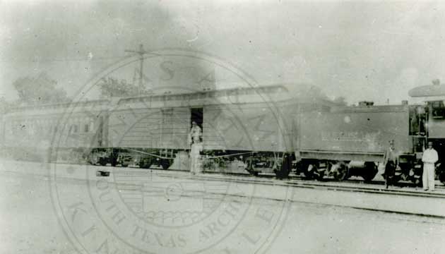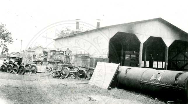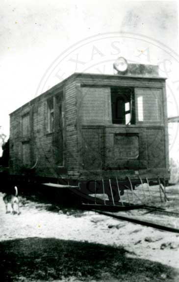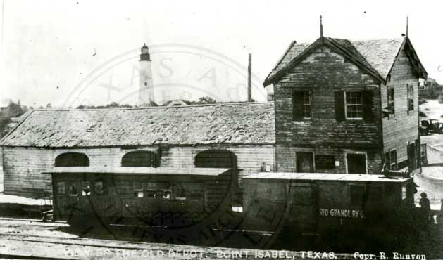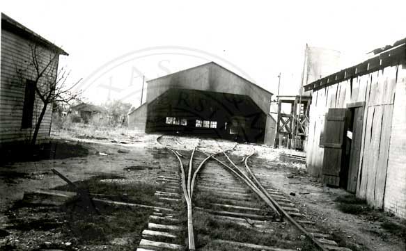 Old Pt. Isabel & Rio Grande Valley Ry. engine House at Brownsville. Note small Motor Car in enginehouse Also the 3 2ay switch.