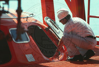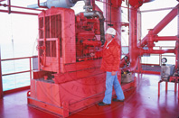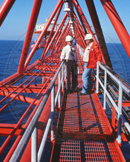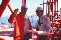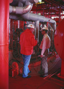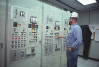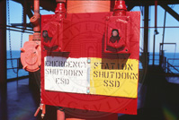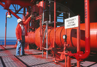Sting Ray City Part II, Employee next to Emergency Shutdown Valves. |