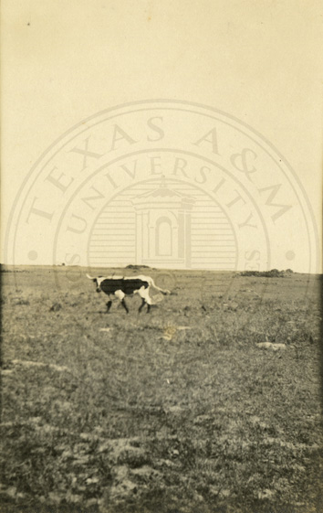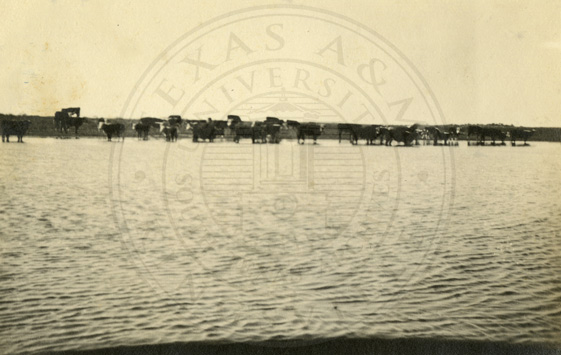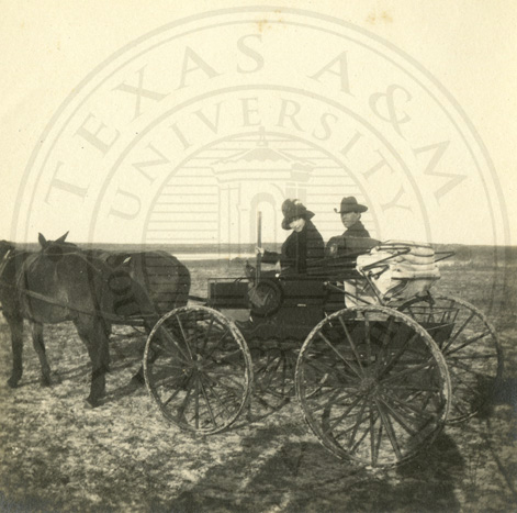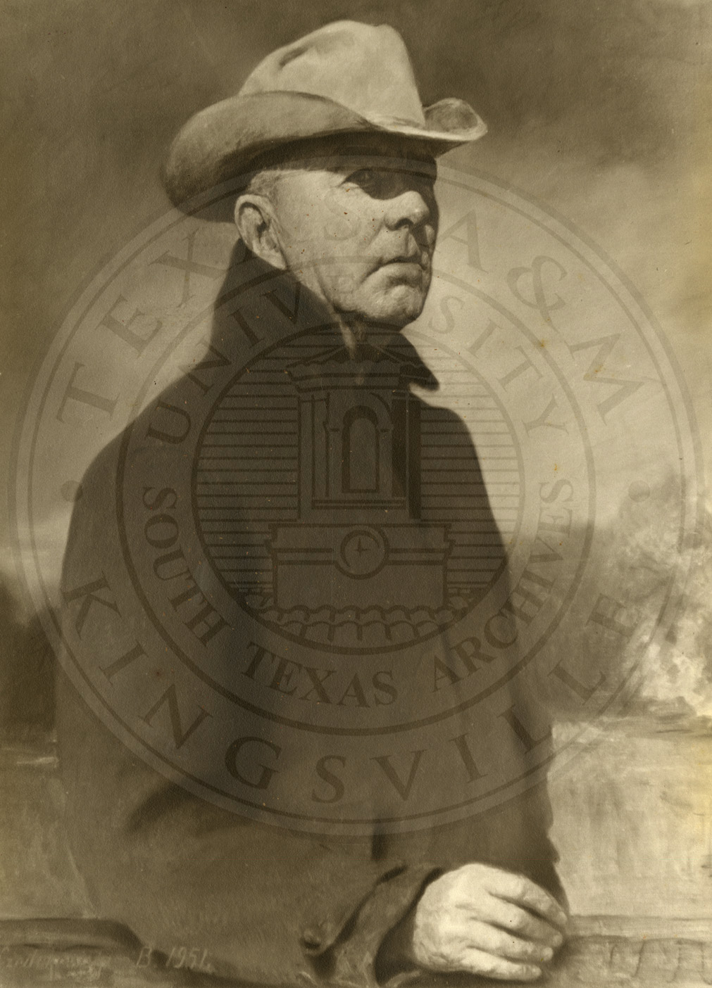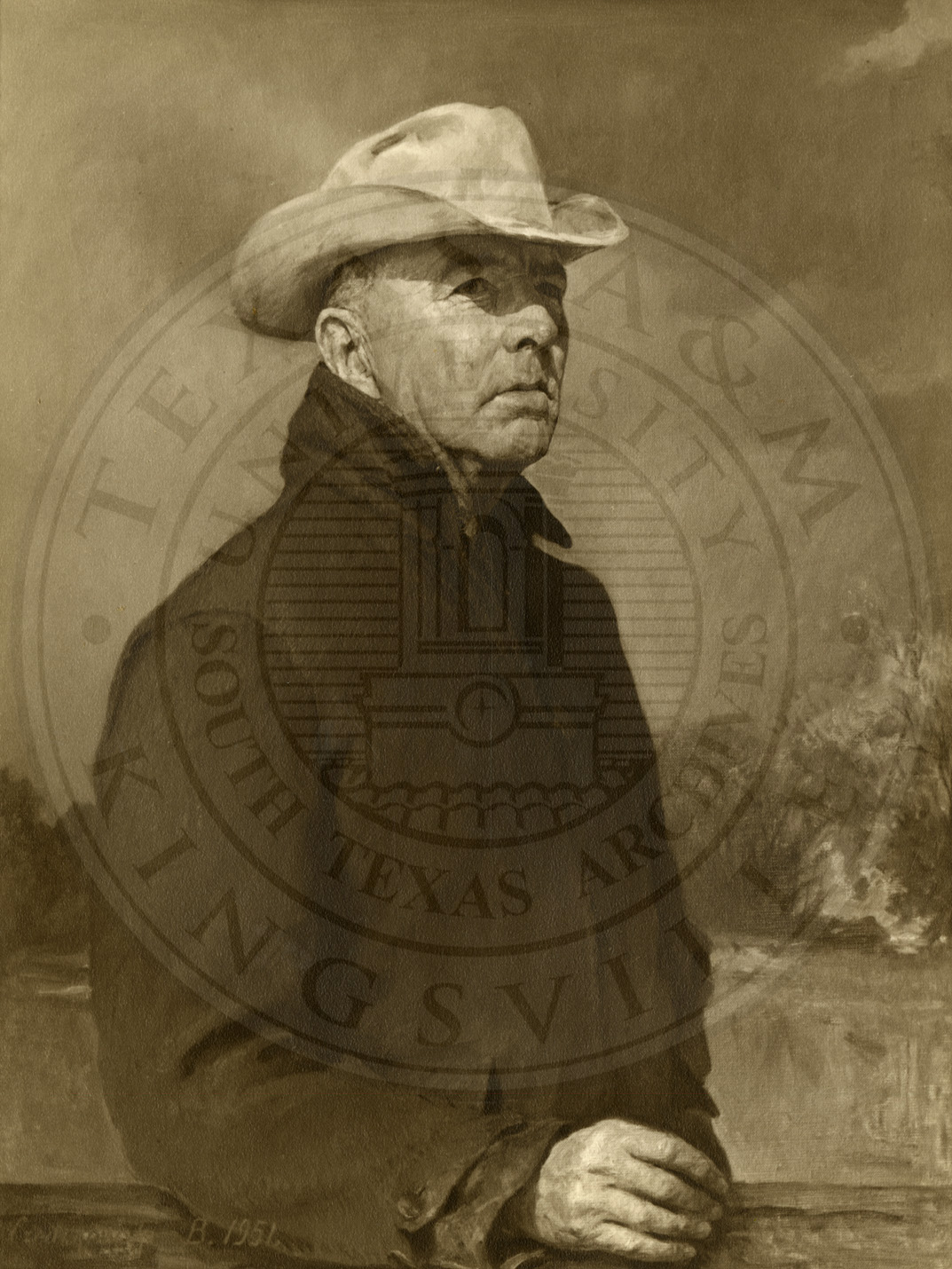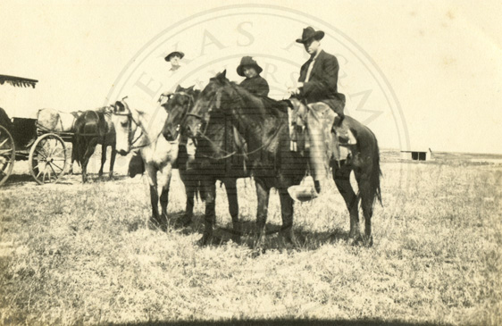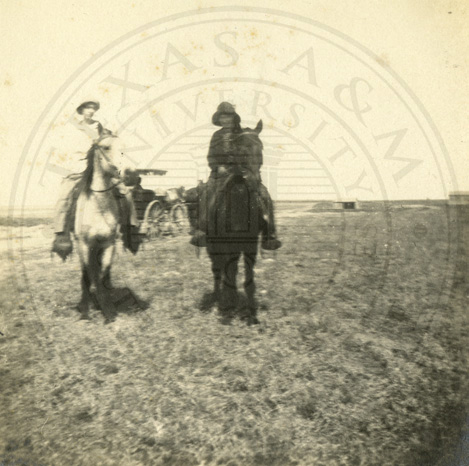 Photo of ranch land. Rider on right is Elena Kenedy, wife of John G. Kenedy, Jr.
