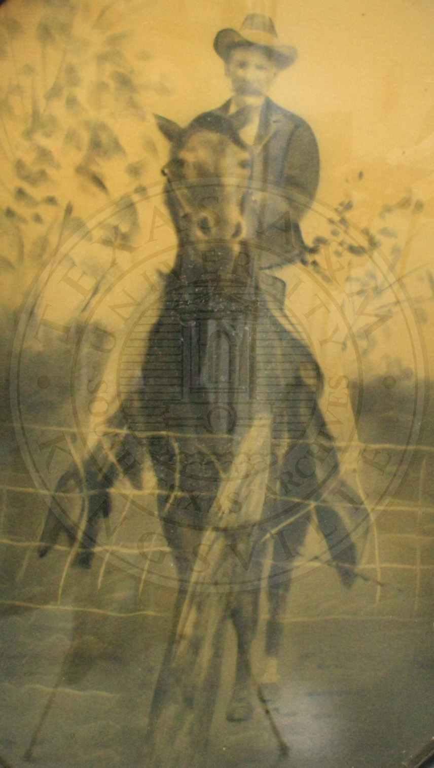 Francisco Alvarez Quintanilla riding a horse on King Ranch in the 1920s. |