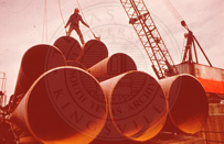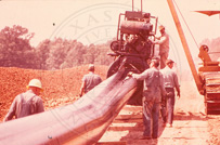 Intro. to Gas Part III. Transmission slides. Hugh pipes lifted by a crane. |