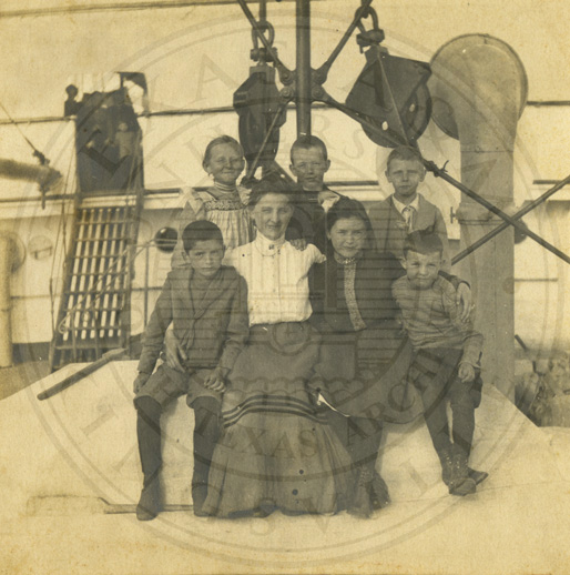Photo of seven unidentified children. Four sitting down in the front and three standing.