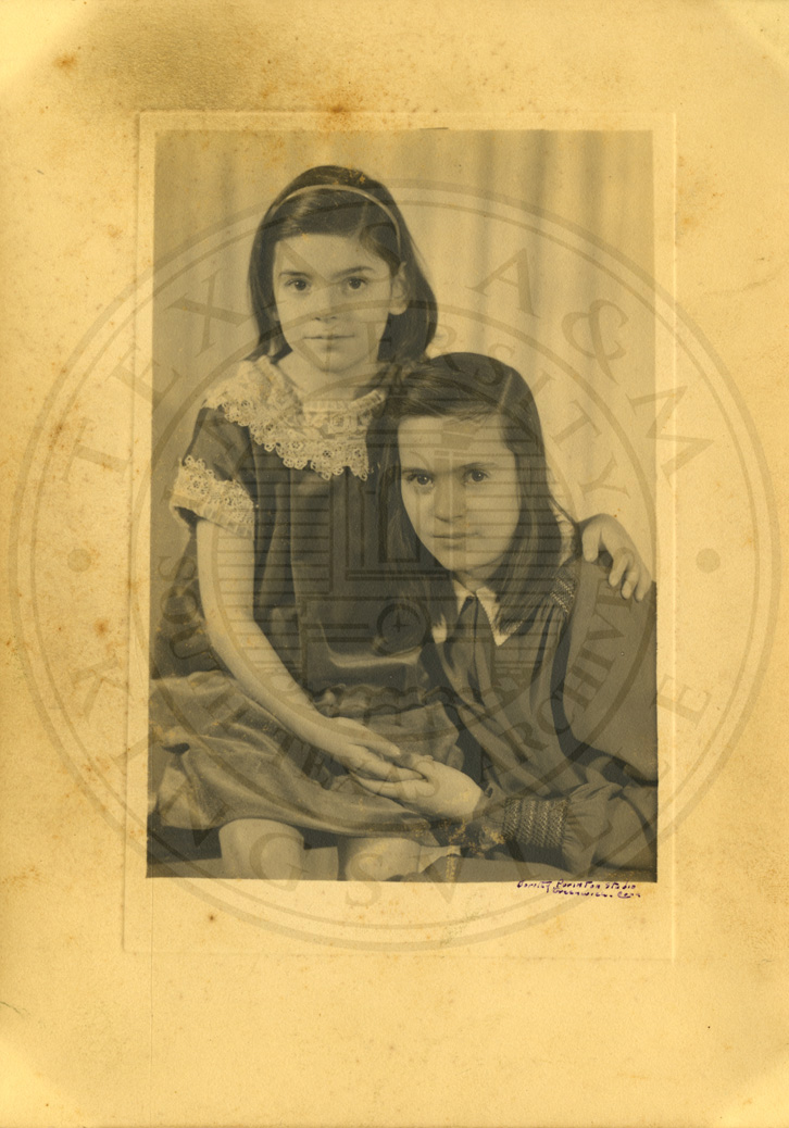 Two unknown girls holding hands. Portrait by Dorothy Purinton, Greenwich Conn.