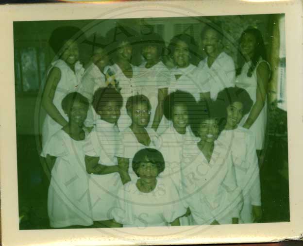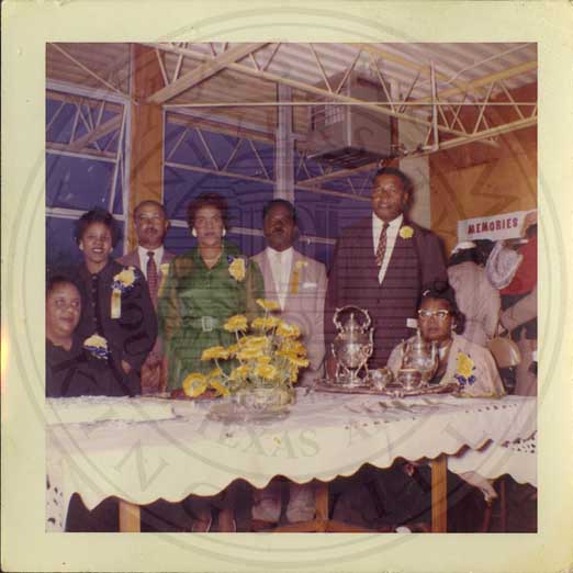 Faculty of Frederick Douglass High School – Seated Mrs. Sam Harris, (L-R) Mrs. Evelyn Andrews, Mrs. Rebecca Summers, Mrs. Vivian Baloney, Chester R. Baloney, Mrs. Sam Harris, Walter Stafford