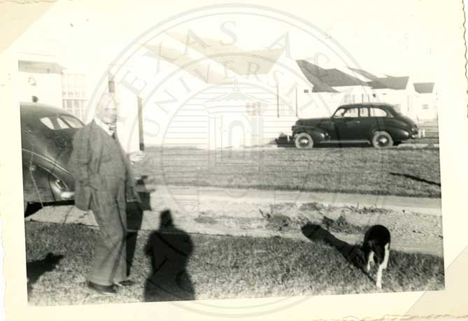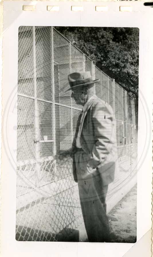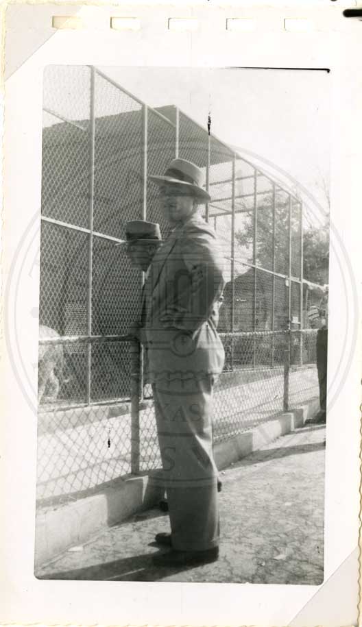 Picture of Dr. William A. Ewert standing infront of the zoo cages |