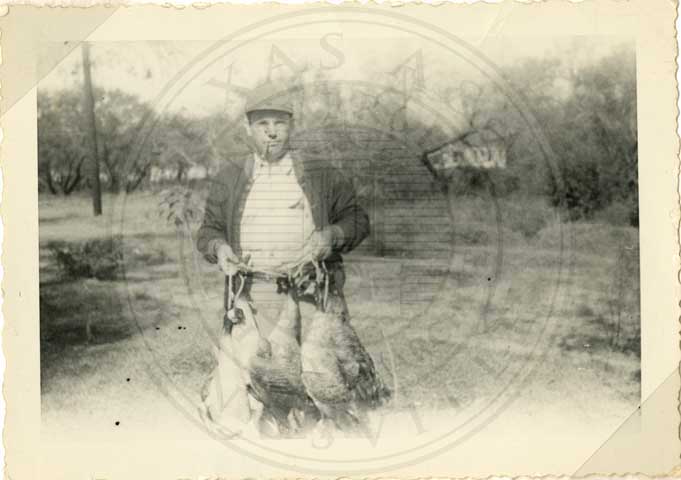 Picture of William (Bill) A. Ewert Jr.standing infront of the cages |