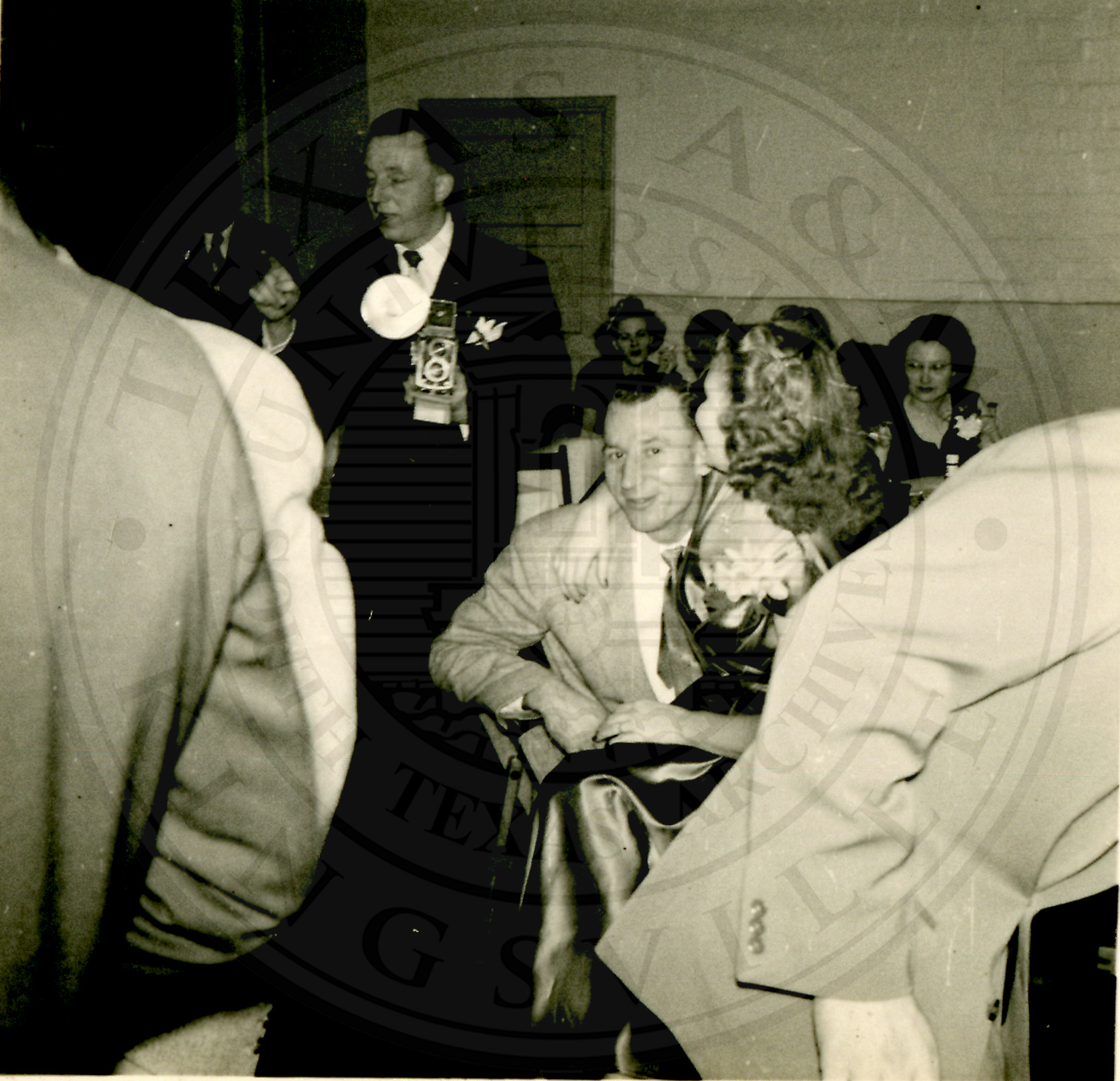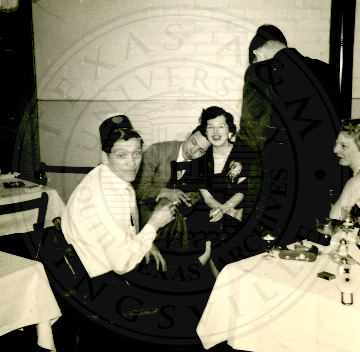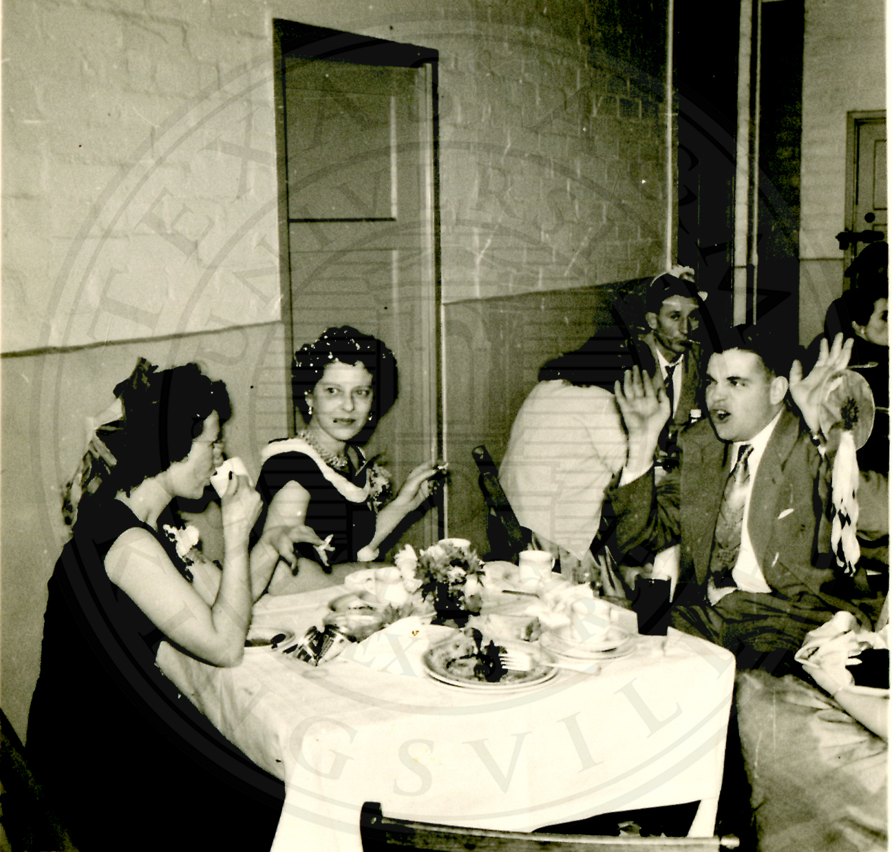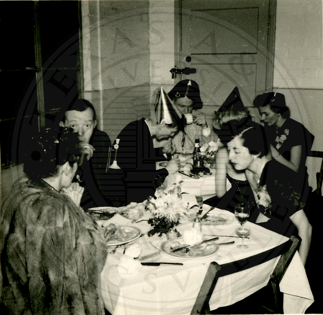 New Years Eve. Several unidentified men and women sitting at tables |
